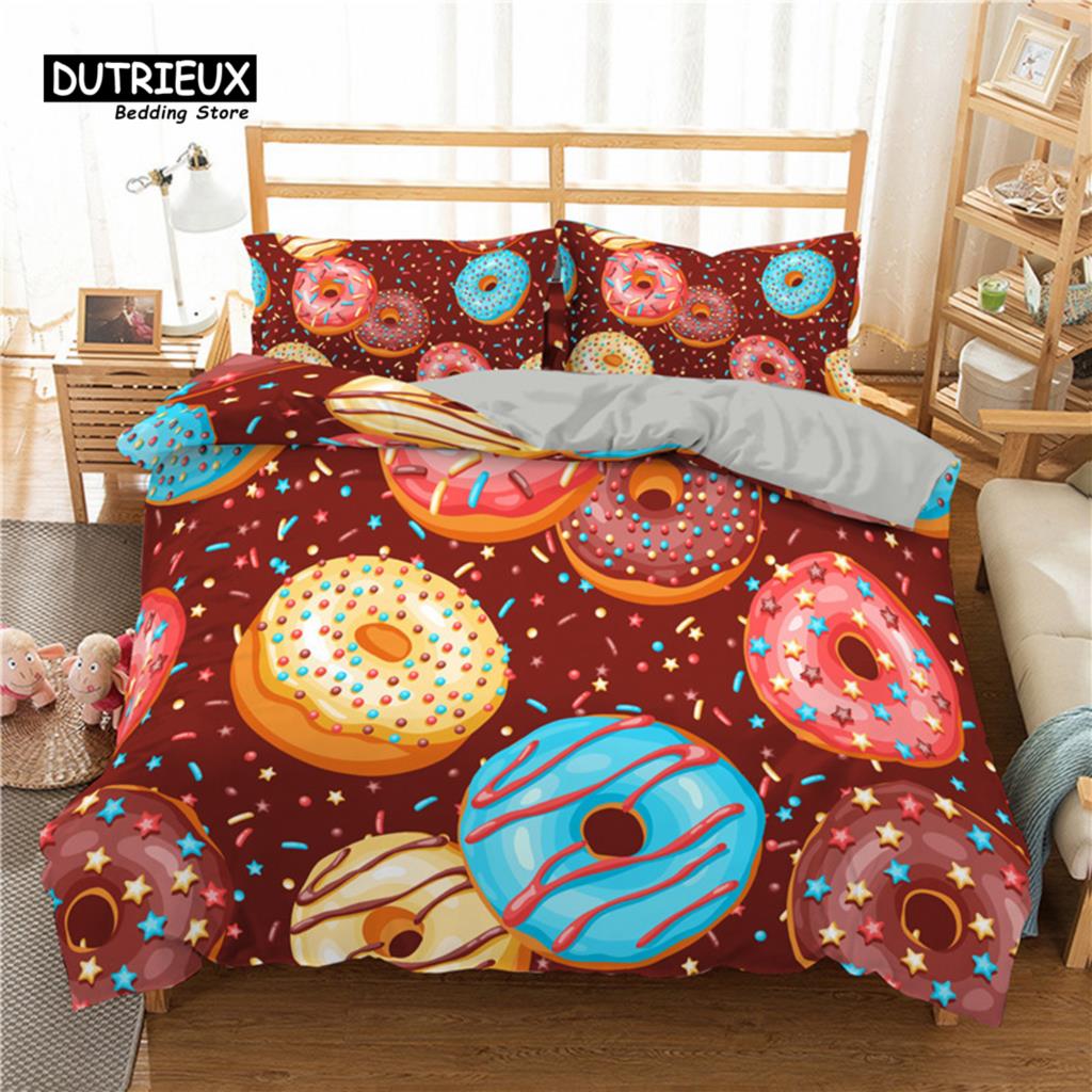Мягкий милый комплект пододеяльников с пончиками, комплект постельного белья с десертной тематикой для девочек и мальчиков, подарки из микрофибры, забавный мультяшный комплект со вкусной едой, пододеяльник EU single(135x200cm)