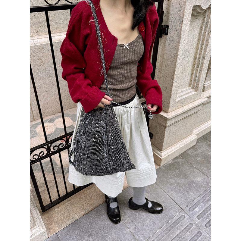 Мягкий сорбет Ручная работа Пэчворк Сетчатая сумка Сумка через плечо Gray feather Blue Black Flash