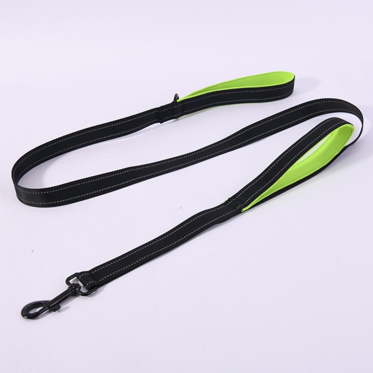 Мягкий и толстый поводок для собак с двумя ручками длиной 1,5 м, высококачественные нейлоновые двойные мягкие ручки для средних, больших или очень больших собак чёрный/зелёный