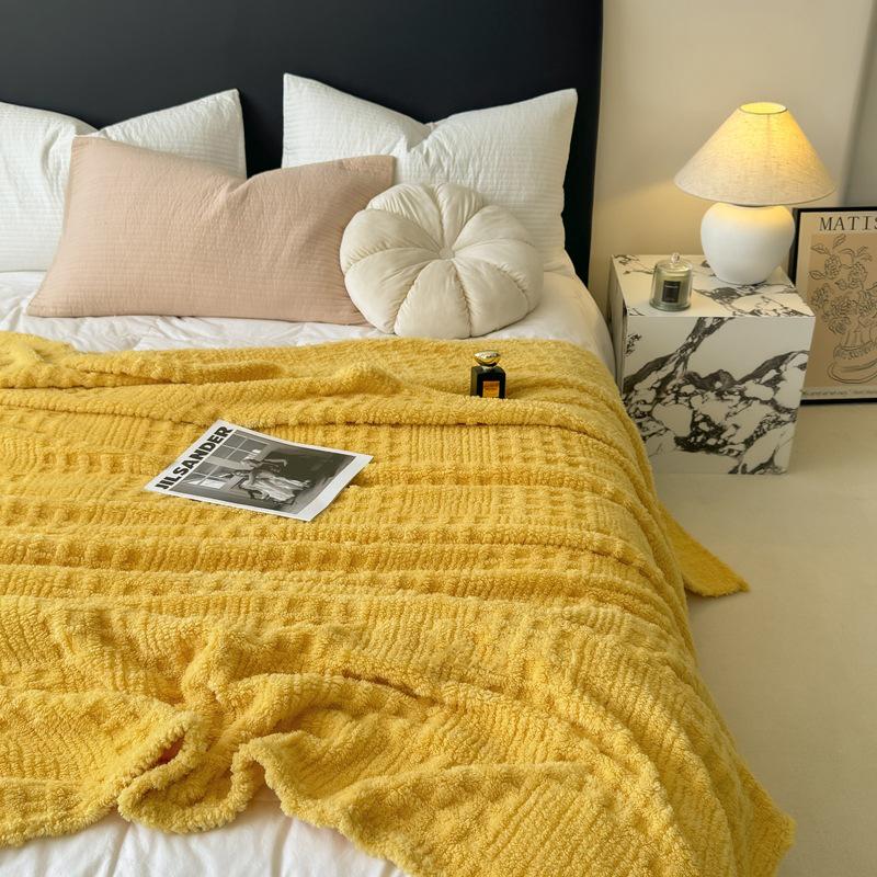 Мягкое вафельное одеяло из хлопкового вельвета - Однотонное, Идеально для сна и в качестве подарка 100x150cm жёлтый