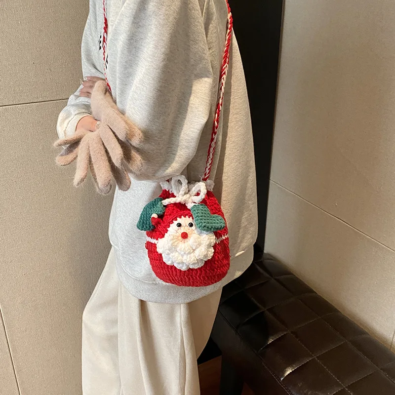 НОВАЯ РОЖДЕСТВЕНСКАЯ Подарочная мини сумка-мессенджер ручной работы из шерсти и ткани с милым мультяшным Санта-Клаусом Детская сумка для хранения забавная Милая Универсальная