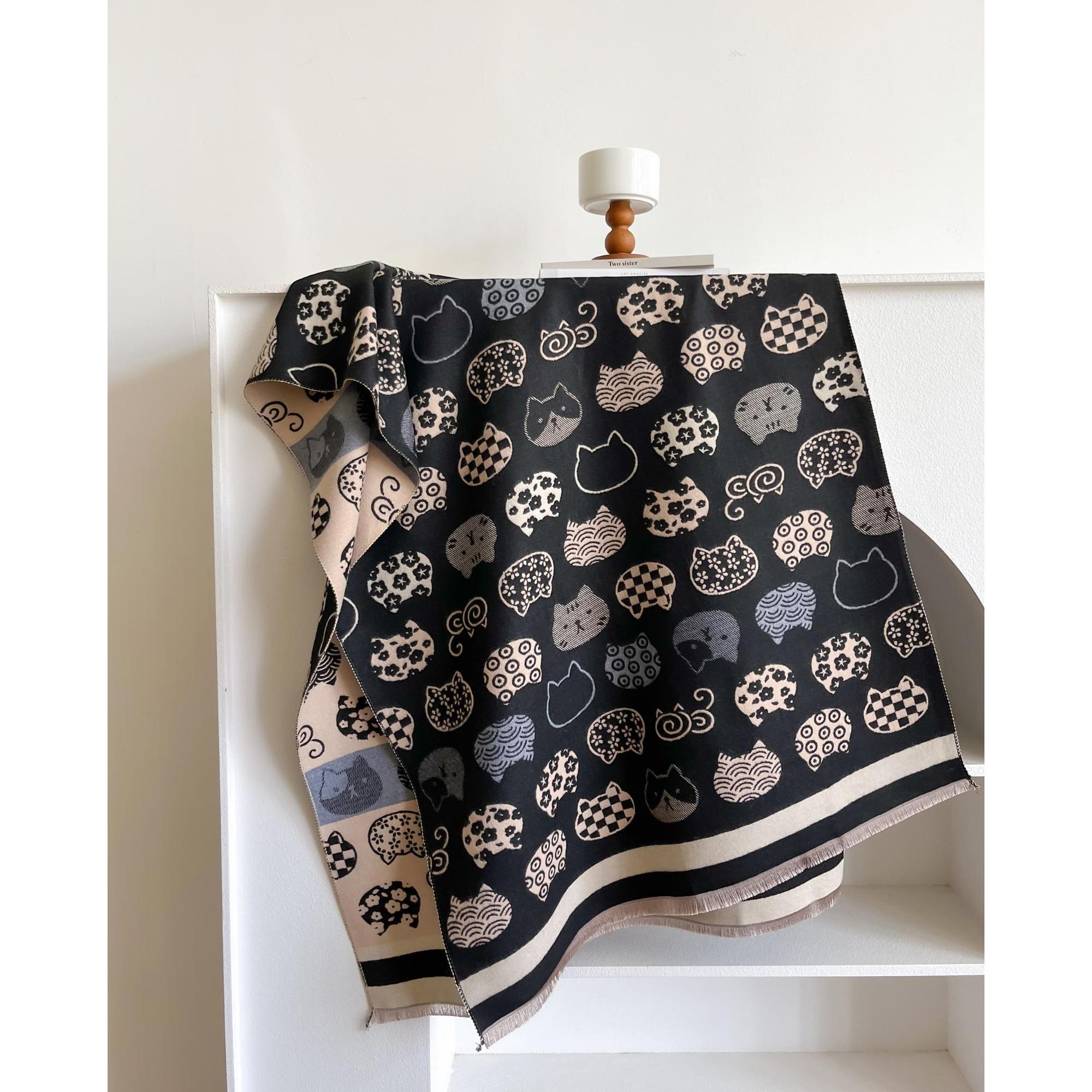 НОВЫЕ женские шарфы из пашмины с бахромой, накидка, зимние теплые модные бренды, дизайнерские кашемировые шарфы с котятами, двусторонние одеяла, мягкие шали