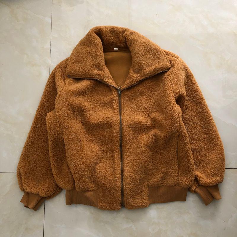 Набитая Утепленная Верхняя Одежда Зима Новое Поступление Внешняя Торговля Женская Одежда Мода Воротник Поло Длинный Рукав Молния Heattech Верхняя Одежда 27160 Camel Yellow B- 21-28-1 XL