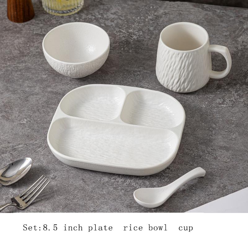 Наборы бытовых керамических тарелок 8,5 дюймов Японский каменный узор Посуда Потеря веса Тарелка с тремя отделениями с миской, ложкой, чашкой 8.5 inches белый