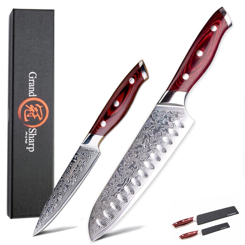 Наборы дамасских ножей из 2 предметов, японская сталь VG10, универсальные ножи Santoku, наборы кухонных ножей шеф-повара