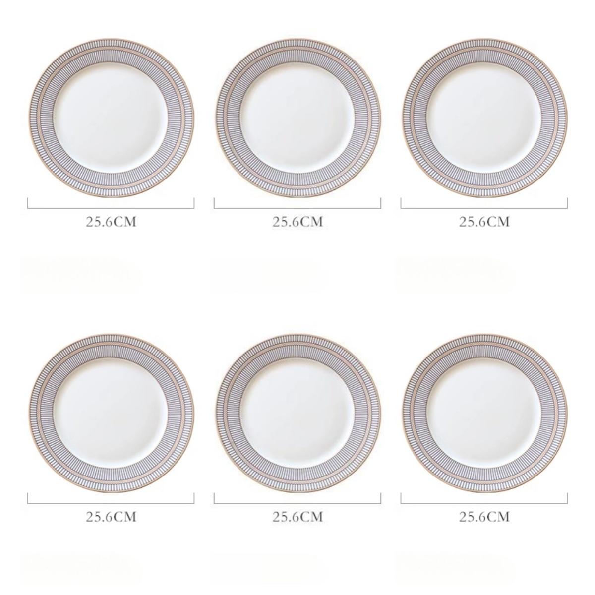 Наборы обеденных тарелок из тонкого костяного фарфора, Посуда в стиле легкой роскоши с полосатым узором и позолоченным краем, Фарфоровая столовая посуда Круглый набор из 6