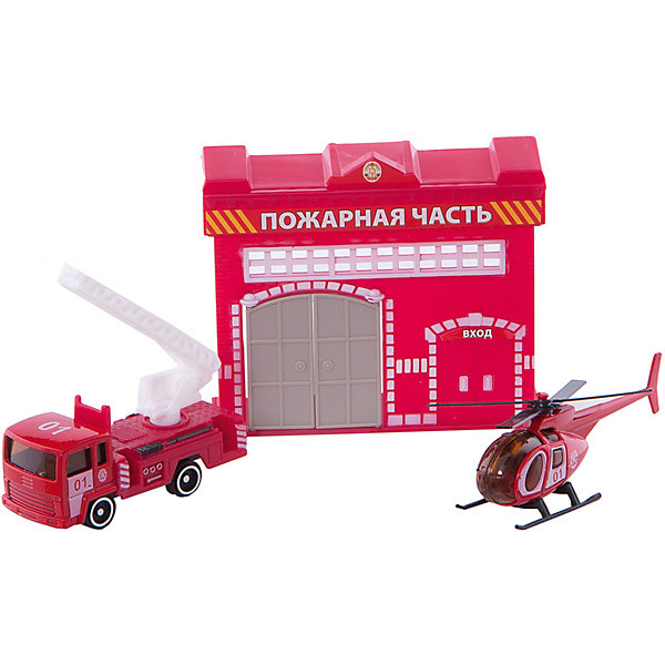 Набор "Пожарная станция с машинкой 7,5см и вертолетом", ТЕХНОПАРК