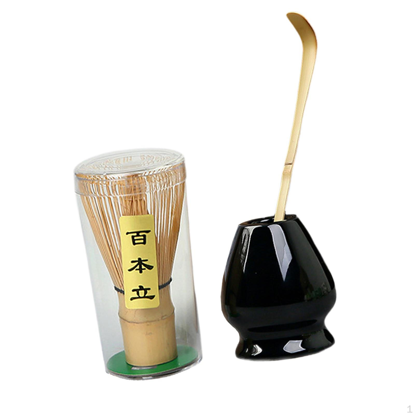 Набор бамбуковых венчиков для приготовления матча с керамической подставкой Black
