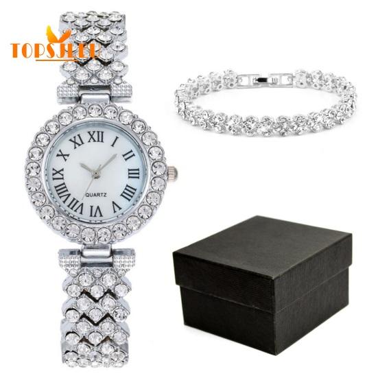 Набор браслетов для часов с блестящими стразами: Кварцевый механизм, точное время, регулируемый ремешок, нержавеющая сталь с гальваническим покрытием — роскошное украшение на запястье серебряный