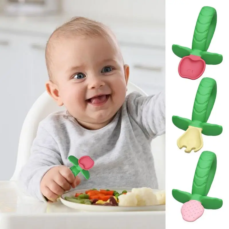 Набор вилок и ложек для малышей, силиконовая мягкая анти-дроссельная детская милая клубничная вилка, набор ложек, можно мыть в посудомоечной машине, удобный захват, столовые приборы для малышей