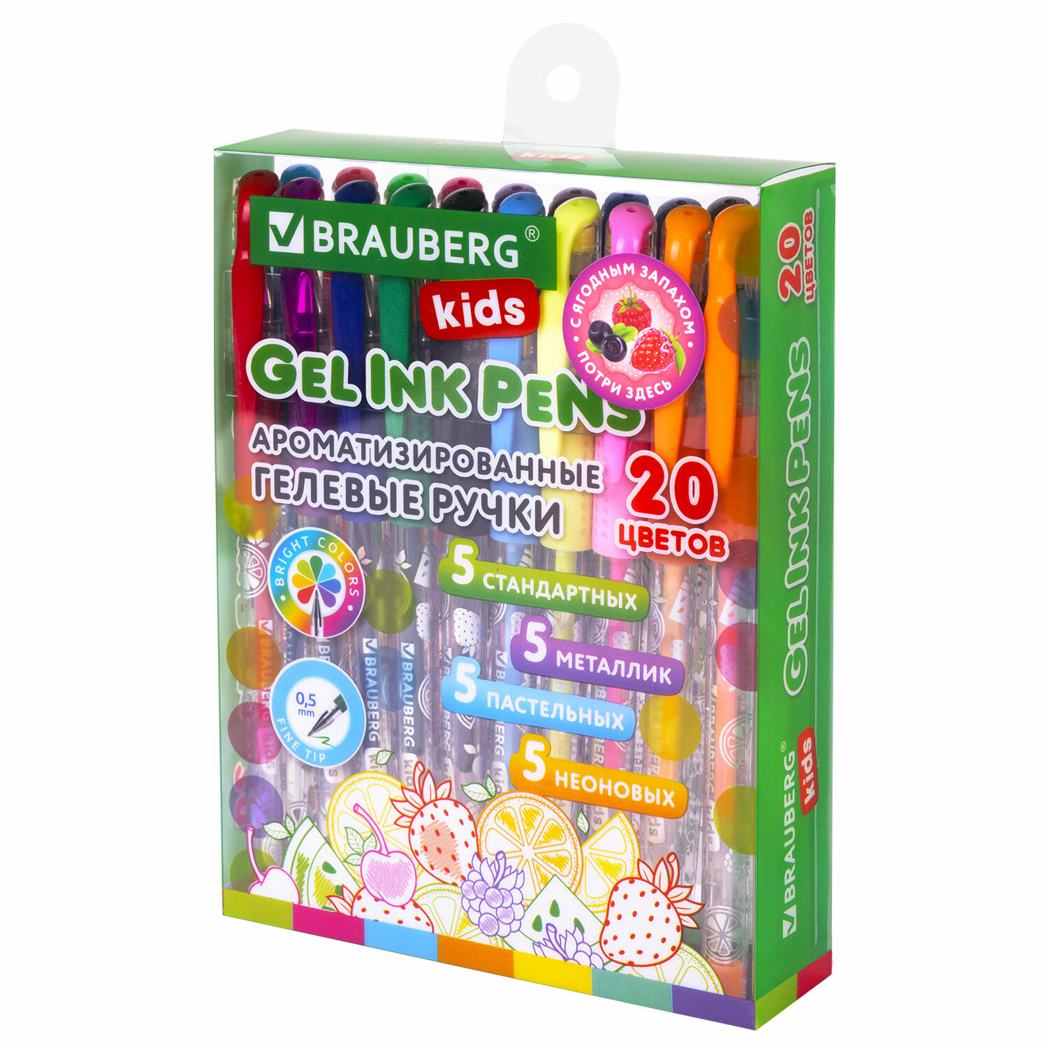 Набор гелевых ручек Brauberg KIDS FRUITS, ассорти, 20 шт., пластик, колпачок, пластик (143824), FRUITS