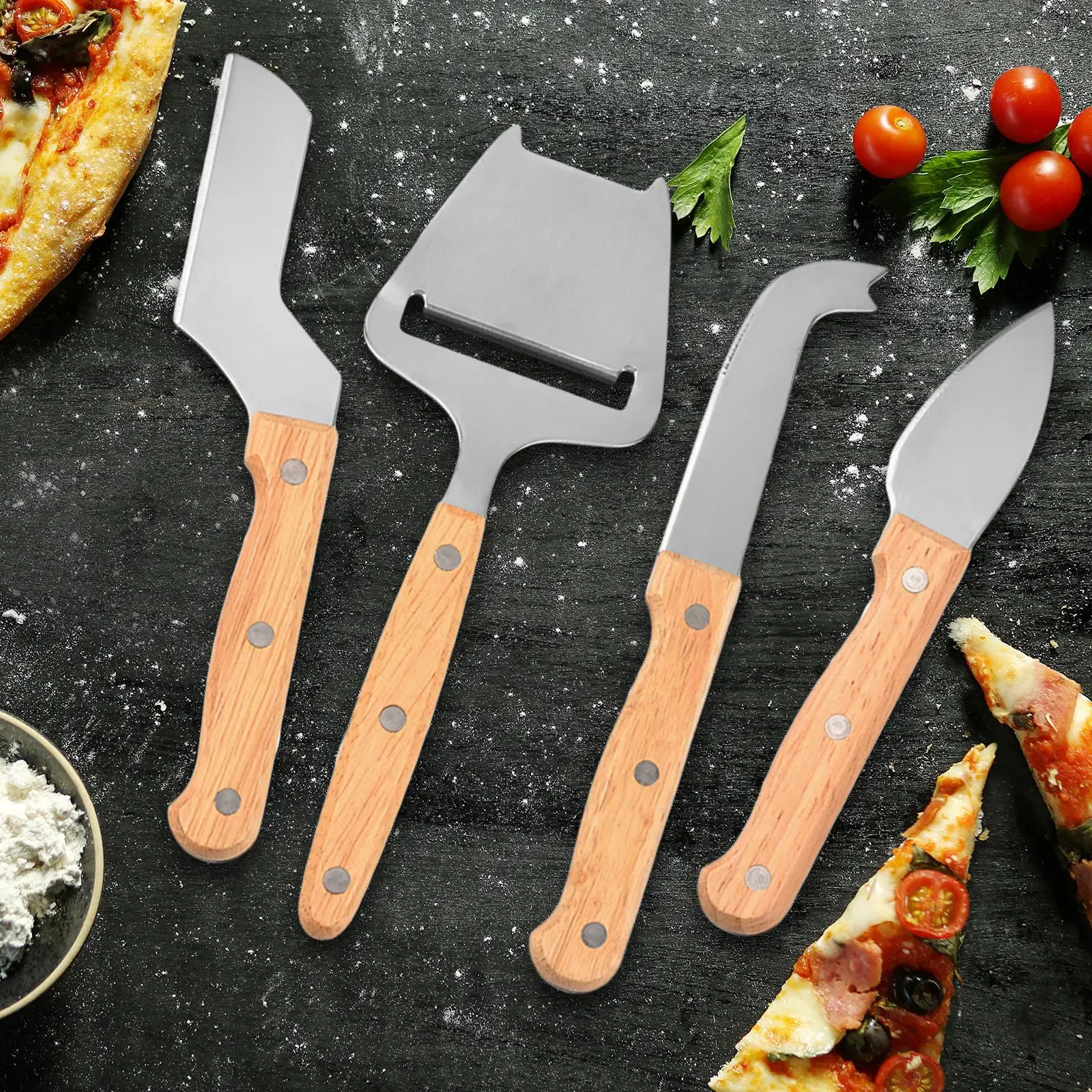 Набор деревянных досок для сыра с 4 резаками, кухонный аксессуар, лопатка для сыра, сервировочный лоток, маленькая нержавеющая сталь, слайсер для сыра, резак