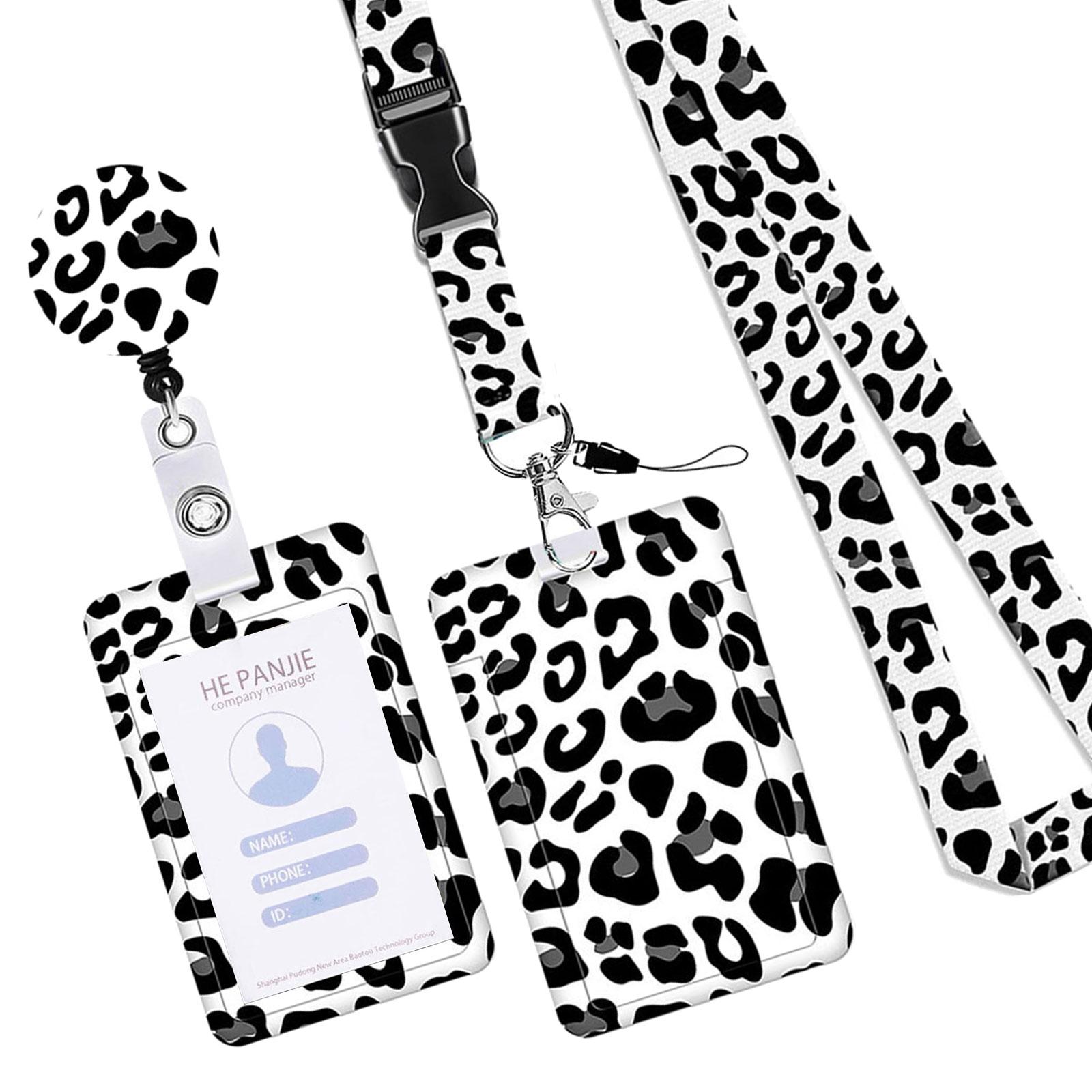 Набор держателя для бейджа с леопардовым принтом и шейного шнурка Держатель для карт с леопардовым принтом с выдвижным держателем для бейджа для офиса 6