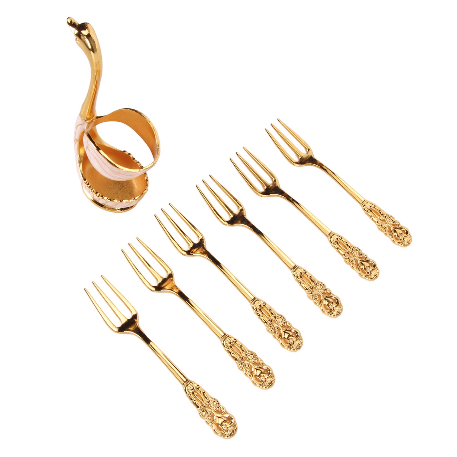 Набор десертных вилок для кофе 6 шт. Металлический держатель-подставка в виде лебедя Органайзер для десертных вилок с 6 вилками для L(for 6.5-9kg)