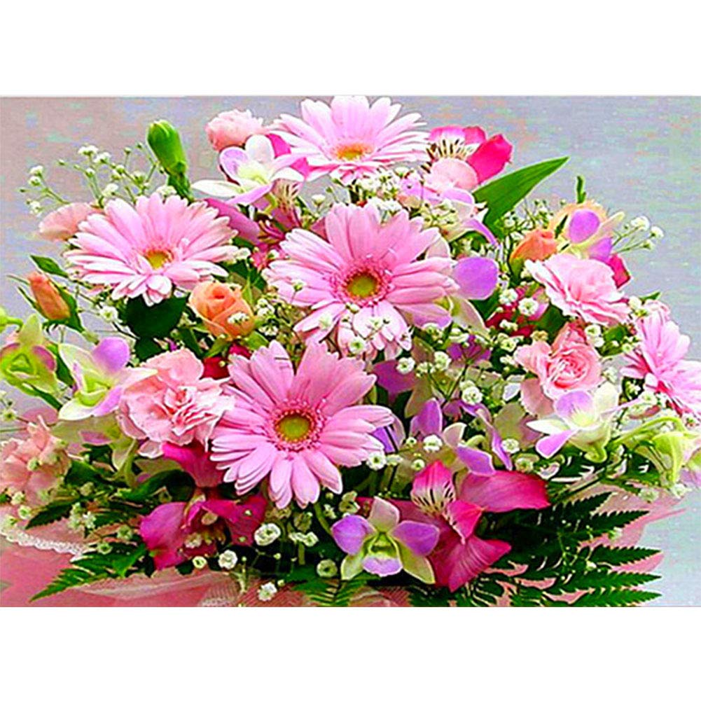 Набор для вышивки крестом DIY Алмазная картина 5D Картина Розовые красивые цветы WOWDECOR Полная дрель DIY Алмазная картина по номерам Набор для масляной живописи,