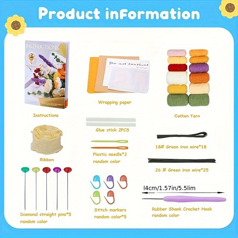 Набор для вязания крючком «Букет роз» с пряжей — полный набор для вязания на свадьбу и в качестве подарка на День святого Валентина — разные цвета для любителей рукоделия