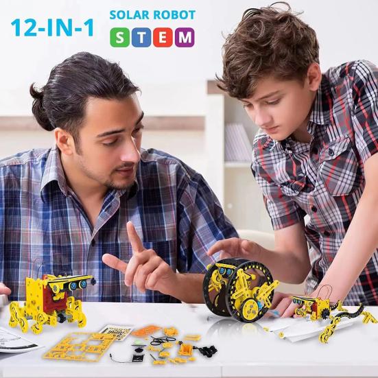 Набор для робота на солнечных батареях, игрушки для детей 8-13 лет, набор для робота на солнечных батареях 12 в 1 для мальчиков и девочек, двигатель на солнечных батареях, образовательные научные наборы жёлтый