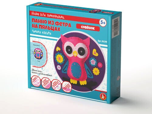 Набор для создания поделок/игрушек Десятое королевство Панно из фетра на пяльцах Совенок 04399