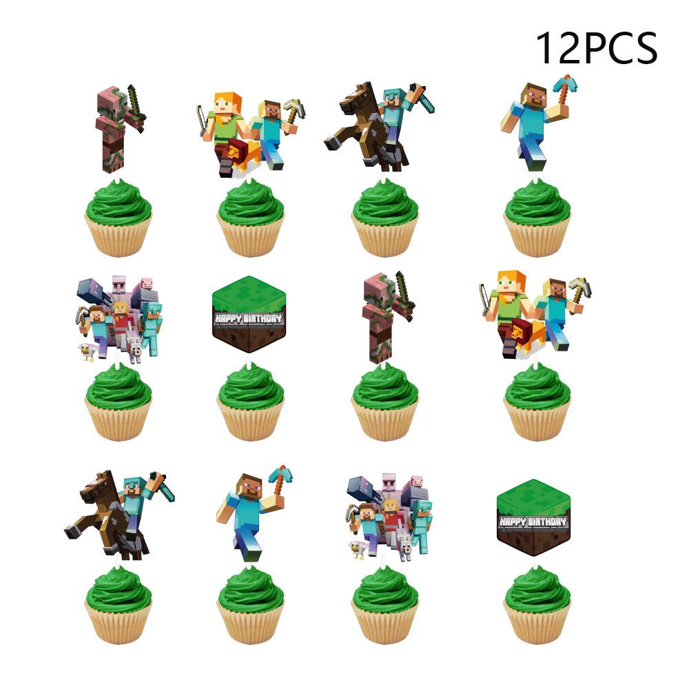 Набор для украшения на день рождения «Пиксельное приключение»: Баннер, Топперы для торта, Воздушные шары