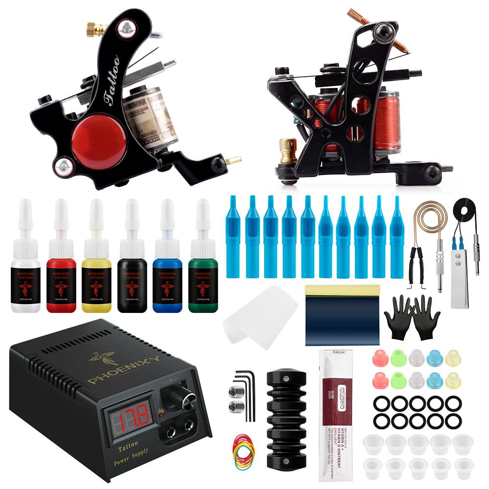 Комплект тату-машины PHOENIXY с набором чернил 6/10/20 цветов, источник питания для татуировки, аксессуары для татуировки, комплект Girp