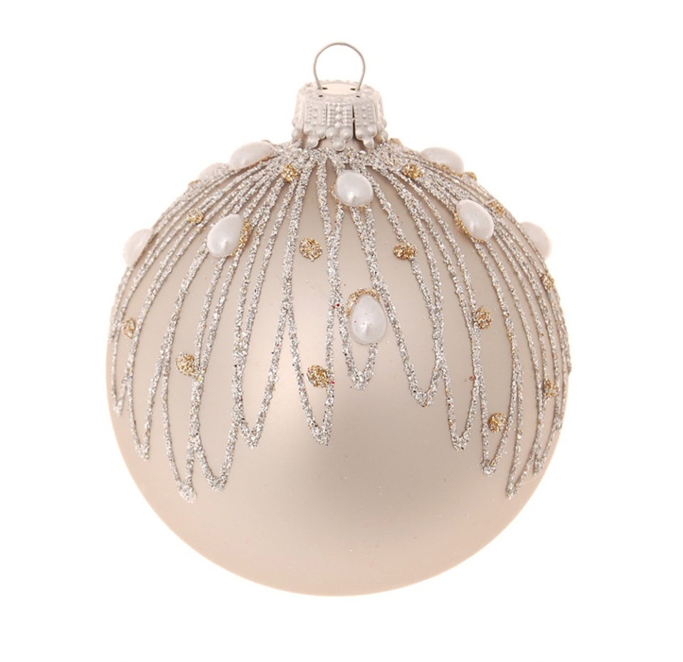 Набор елочных игрушек Krebs «Коллекция Традиции» Шары со стразами 8 см цвет серебристый, стекло, ручная работа 6 шт, Германия