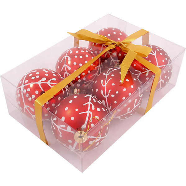 Набор елочных шаров Magic Land красный с белым, 6 штук, Разноцветный