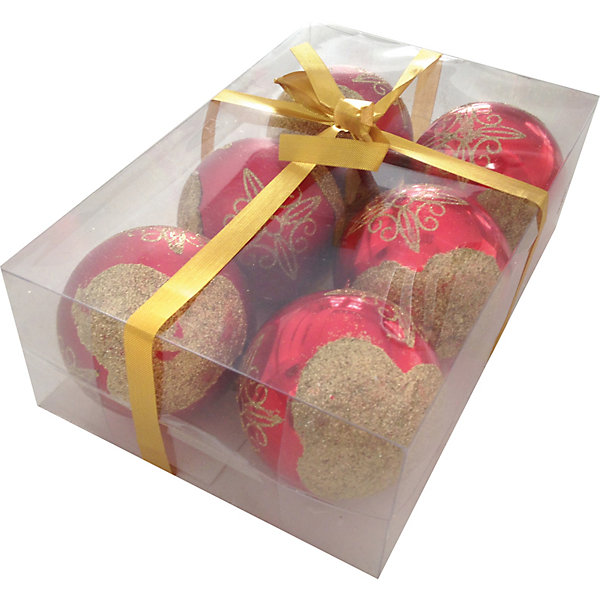 Набор елочных шаров Magic Land красный с золотом, 6 штук, Разноцветный
