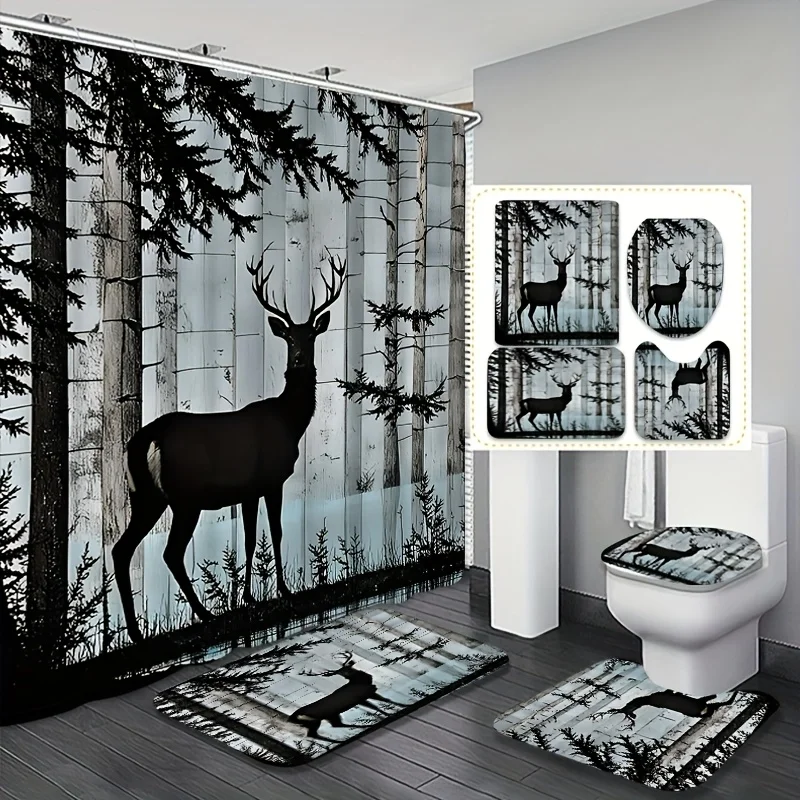 Набор занавесок для душа «Лось» из 4 предметов — современный декор для ванной комнаты с 12 крючками, водонепроницаемый, можно стирать в машине для ванной комнаты