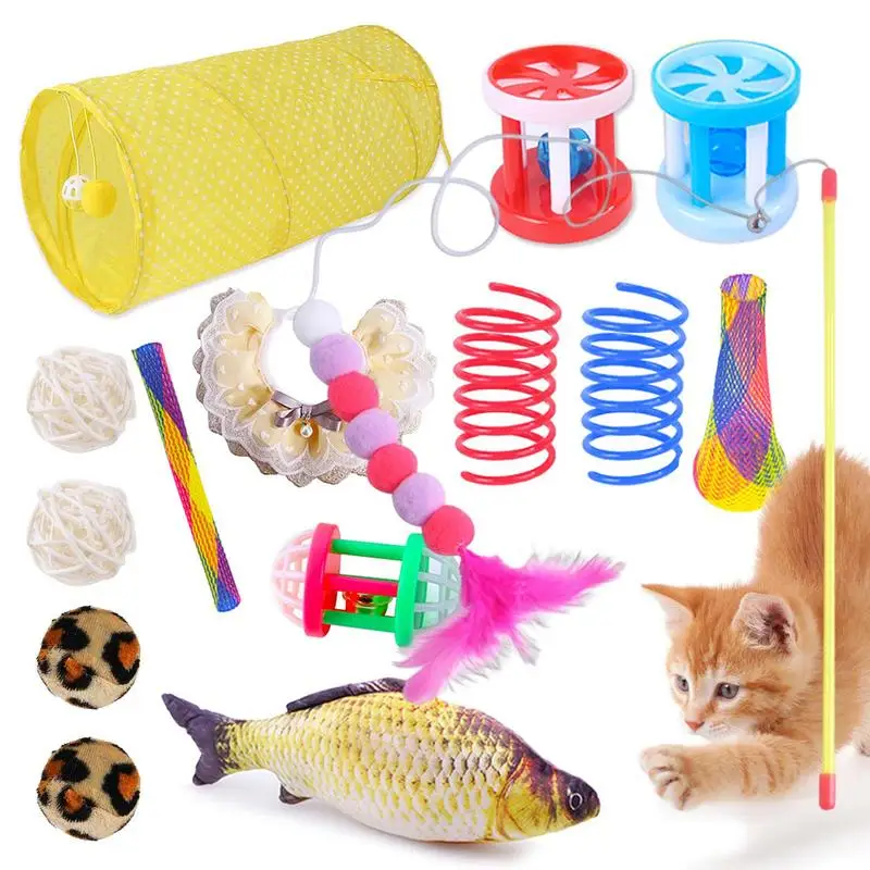 Набор игрушек для котят, 16 шт., интерактивные игрушки для кошек, разнообразные игрушки для кошек, перья, игрушки для кошачьей мяты с перьями, тизер, колокольчик, мяч