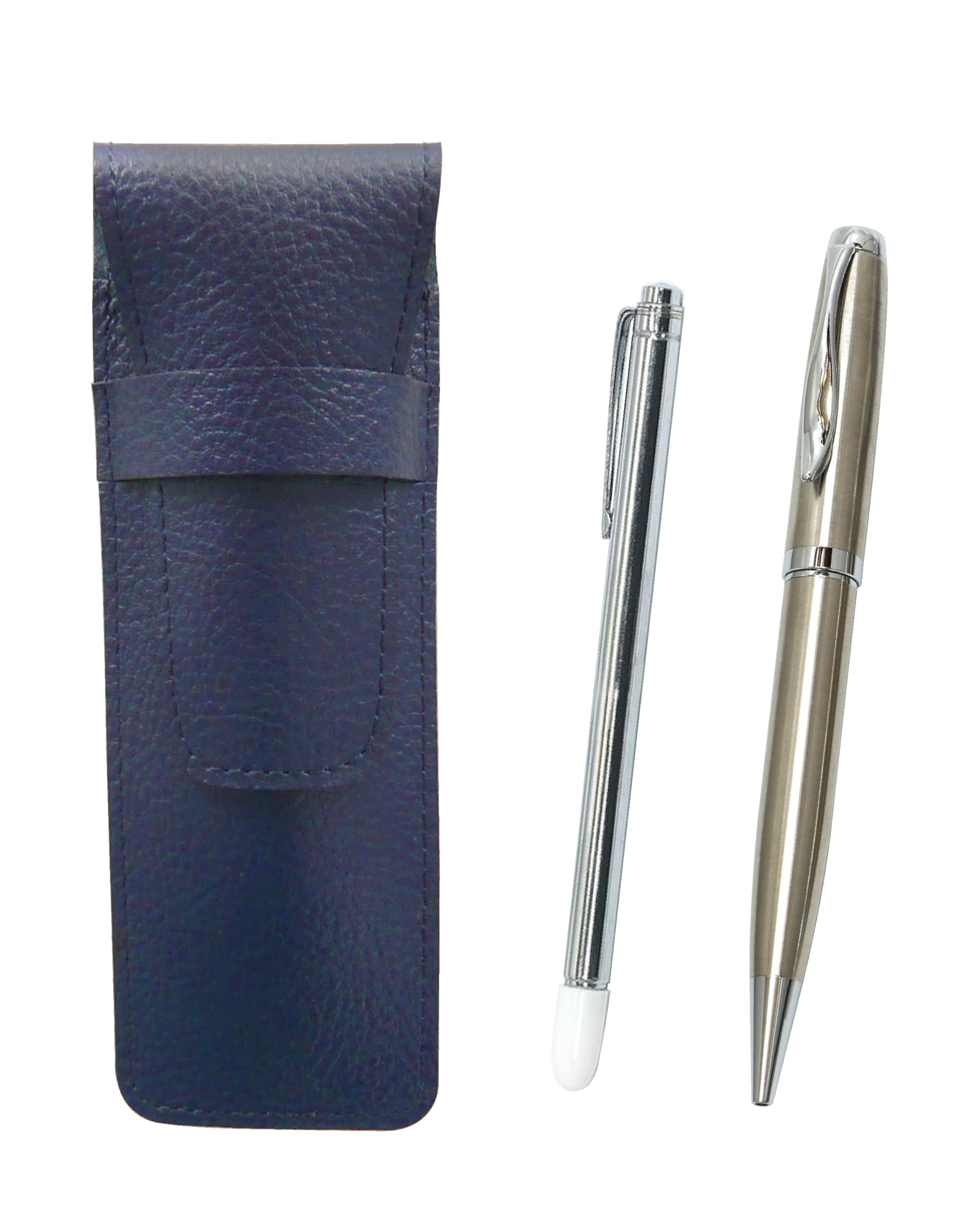 Набор из зернистого кожаного пенала, синего металлического стержня-индикатора и элегантной серебряной вращающейся шариковой ручки SASL-701S-LF01CB
