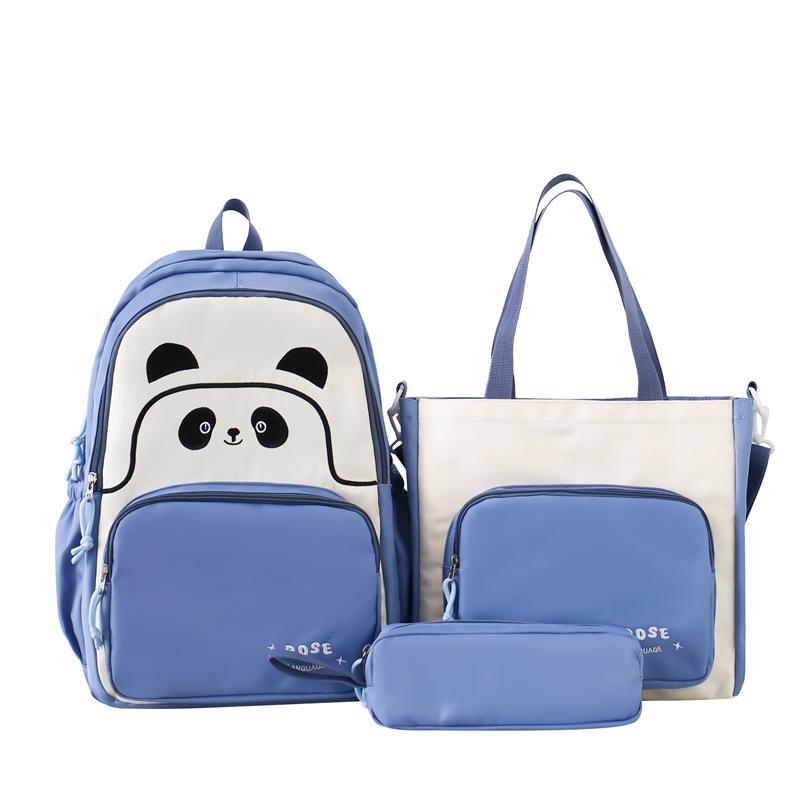 Набор из трех предметов: рюкзак, мультяшный рюкзак с пандой для студентов, школьный рюкзак для детей, рюкзак большой вместимости для девочек синий