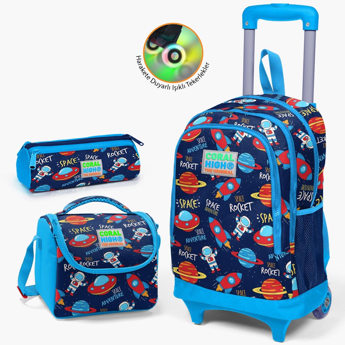 Набор из трех предметов: сумка Coral High Kids, темно-синий, синий с космическим узором и скребком SET0123376