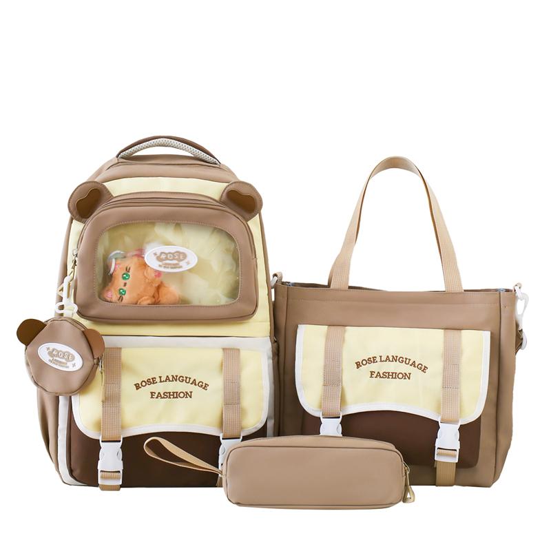 Набор из трех предметов: школьный рюкзак, рюкзак для ученика средней школы, рюкзак для девочки большой вместимости с цветным контрастом хаки