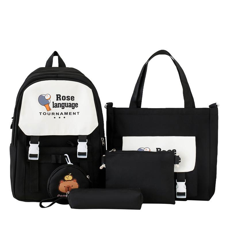 Набор из четырех предметов: школьный рюкзак для учеников начальной и средней школы, женский рюкзак большой вместимости чёрный