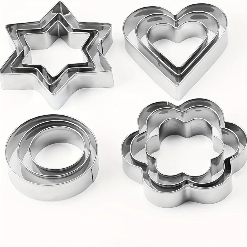 Набор из 12 металлических формочек для печенья, креативная форма для печенья в виде звезды, круглые/сердечные/цветочные формы для яиц, инструменты для выпечки в помещении и на открытом воздухе
