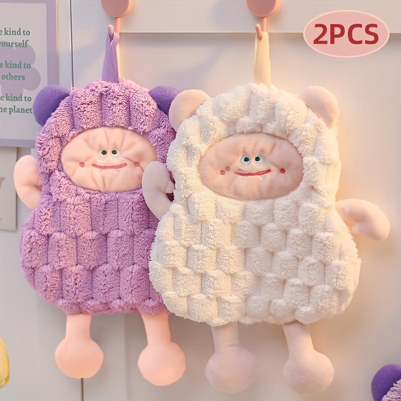 Набор из 2 мультяшных подвесных полотенец для рук, Супервпитывающая утолщенная коралловая флисовая ткань, Быстросохнущие кухонные и ванные салфетки для рук, Современный полиэстер-полиамид,