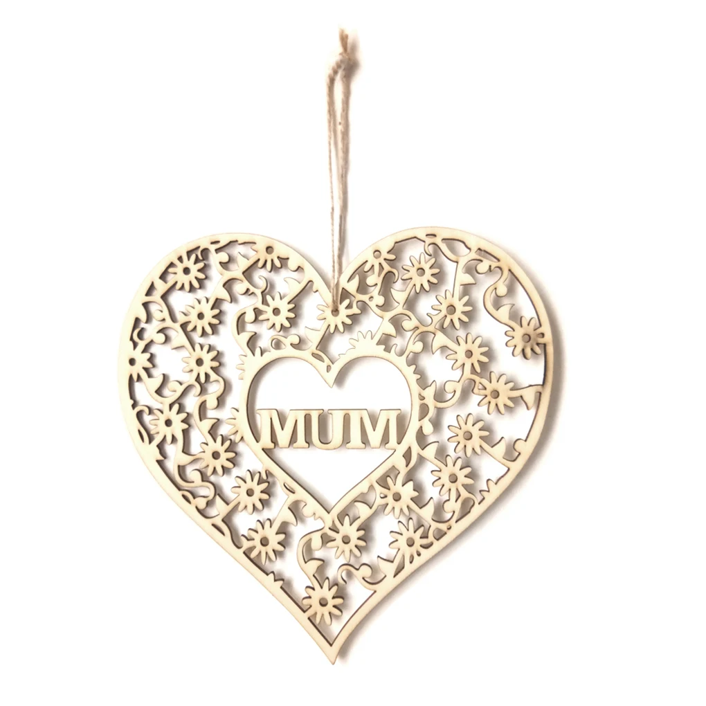 Набор из 2 подвесок в форме сердца, прочные полые подарки для мам от дочери, деревянные украшения, фотообои для двери