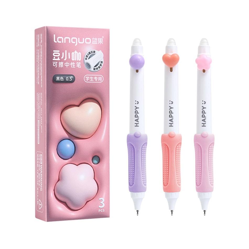 Набор из 3 гелевых ручек Happy Beans с эргономичной треугольной ручкой, стираемые черные цветные чернила, 0,5 мм, шариковая ручка для письма в школе