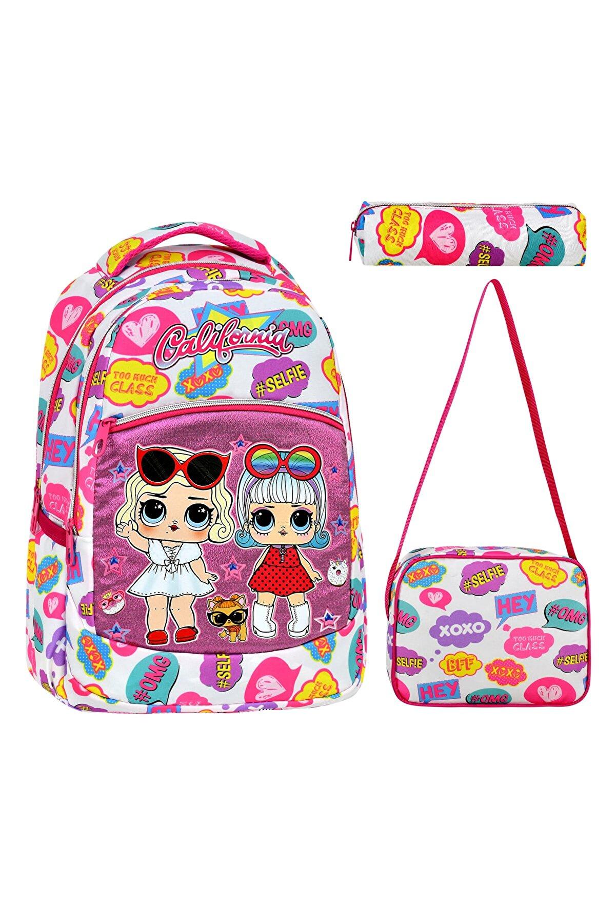 Набор из 3 предметов: сумка для начальной школы с рисунком белого цвета + коробка для завтрака + держатель для карандашей