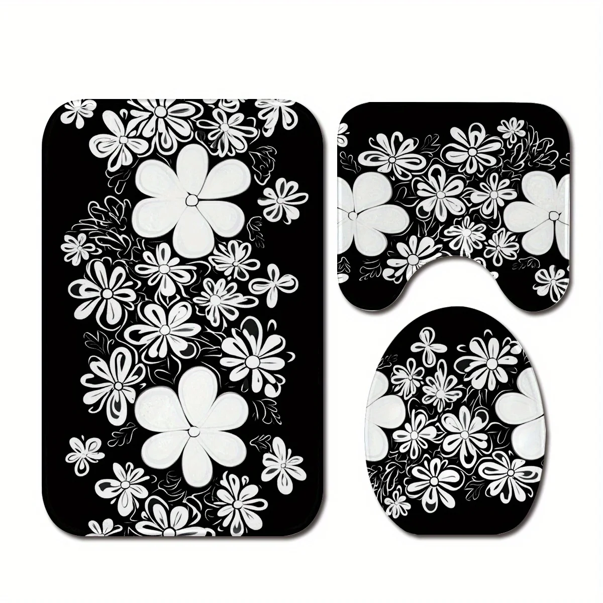 Набор из 3 предметов с цветочным принтом, можно стирать в машине, полиэфирная ткань, U-образный коврик, нескользящий коврик, чехол на сиденье унитаза.