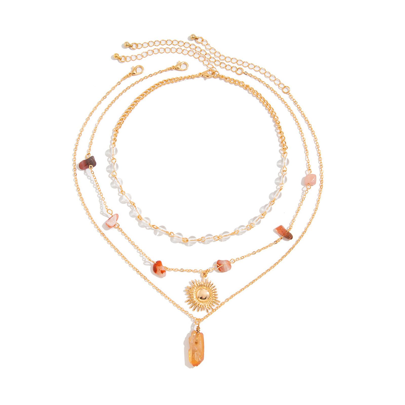 Набор из 3-слойных подвесок-кристаллов солнца на цепочке для женщин в богемном стиле, шейные украшения для любителей моды