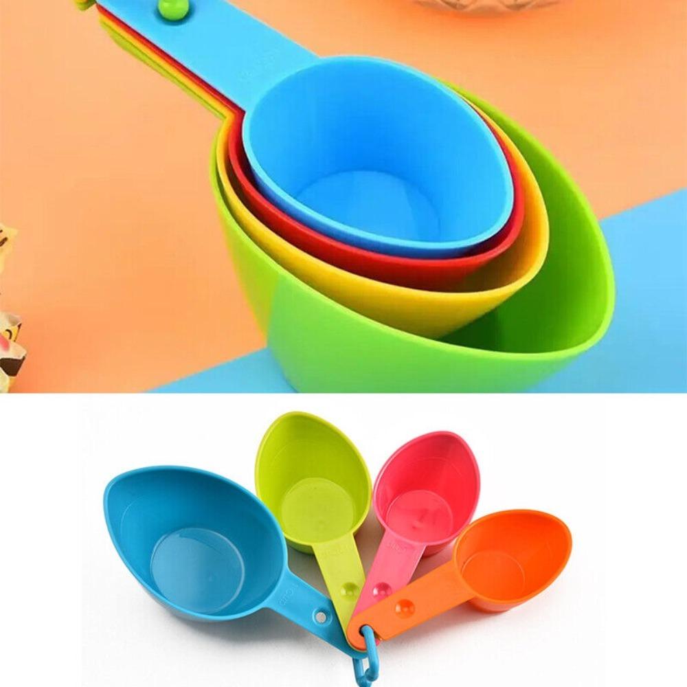 Набор из 4 предметов: разноцветные мерные чашки и ложки. Градуированная цветная мерная ложка.