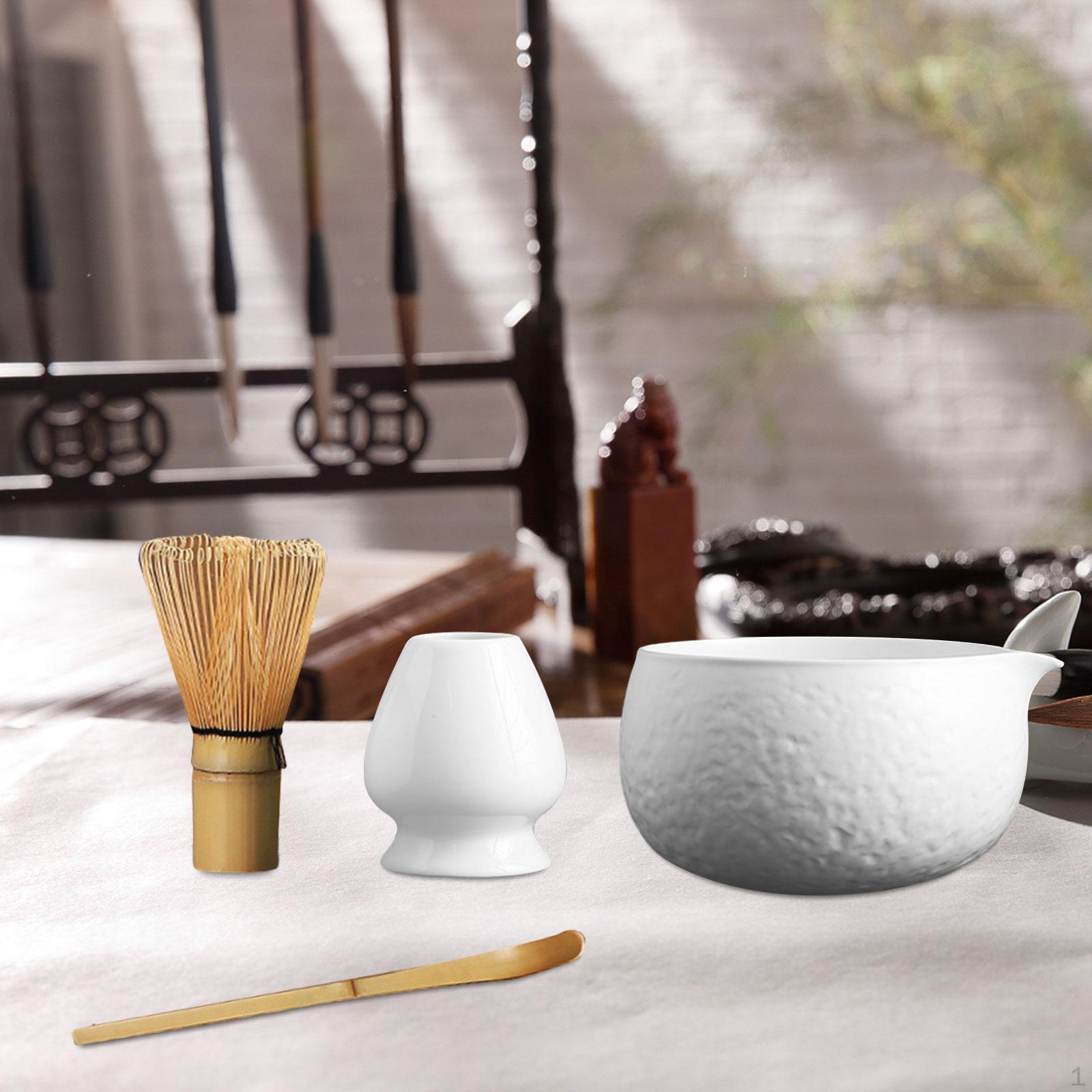 Набор из 4 предметов японского матча, керамические чаши, держатель для венчика, аксессуар для церемонии для спальни белый