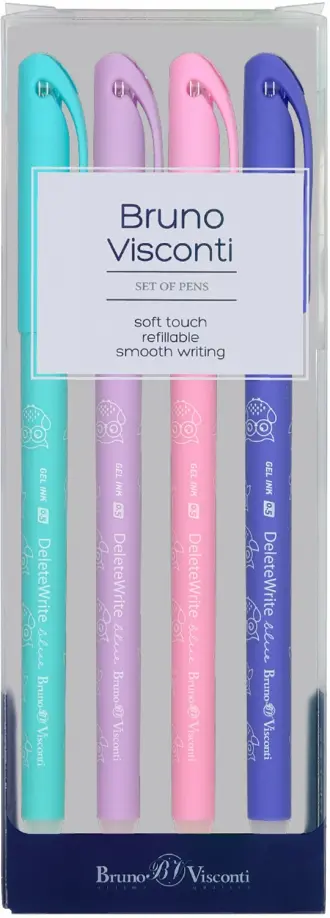 Набор из 4 ручек со стираемыми чернилами DeleteWrite. Совушки, 0.5 мм, синий