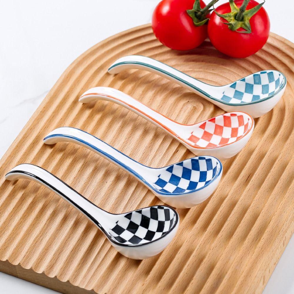 Набор из 4 фарфоровых керамических суповых ложек с длинной ручкой для дома