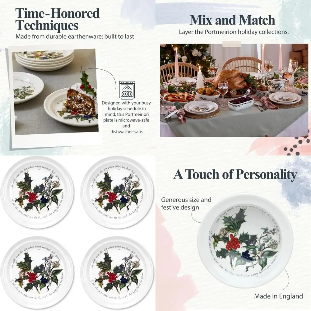 Набор из 4-х тарелок для хлеба и масла с узором Холли 7,25 — глиняная посуда, рождественская посуда, микроволновая печь, духовка, морозильная камера, можно мыть в посудомоечной машине