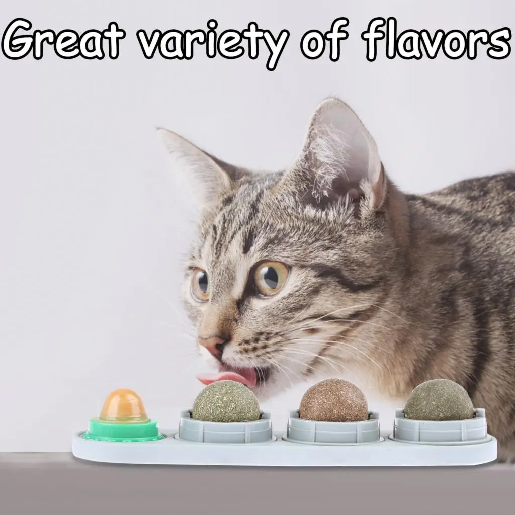 Набор из 4 шариков из кошачьей мяты, игрушки для кошек, лакомство, самоклеящаяся вращающаяся кошачья мята, мяч для котов, настенное крепление...