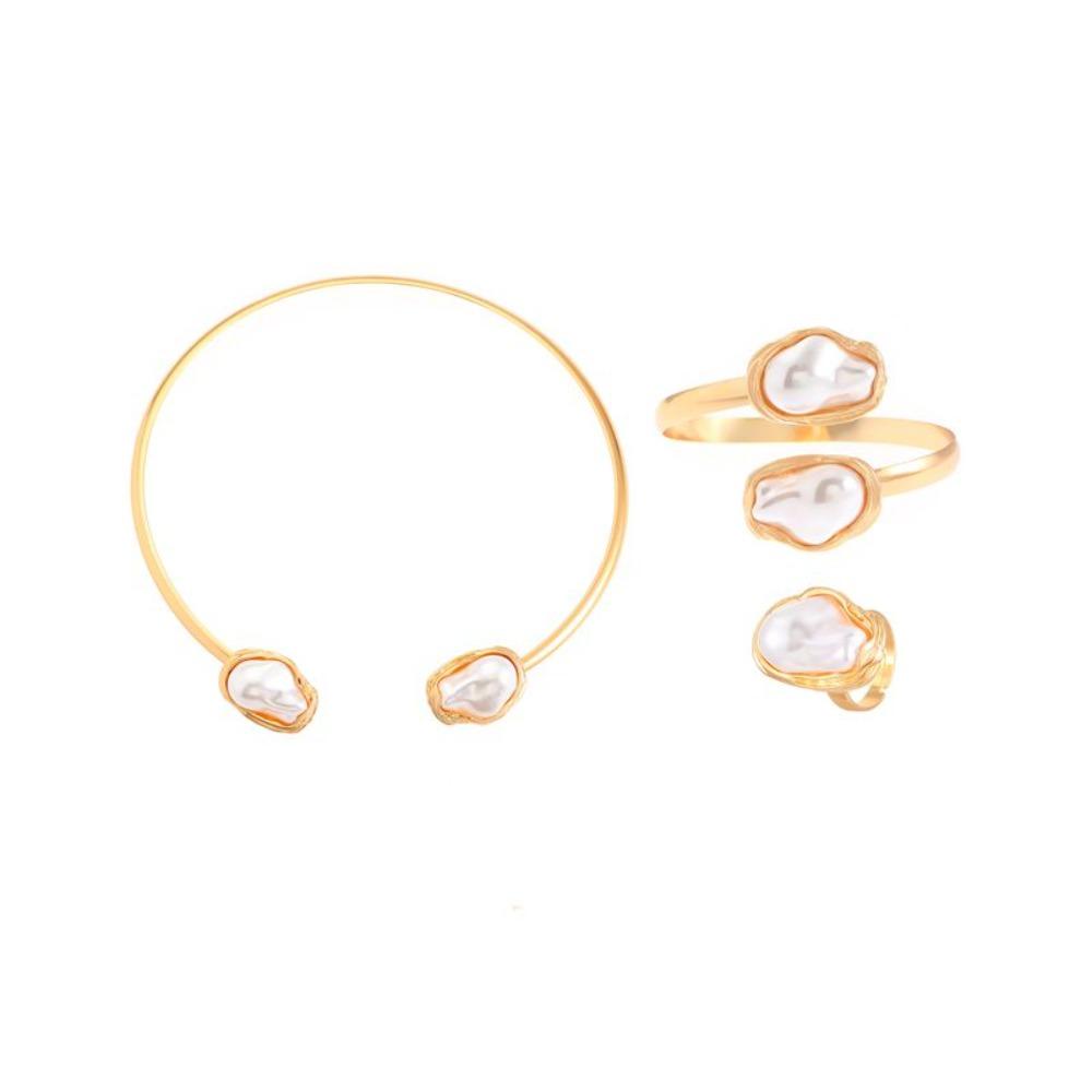 Набор из 4 шт. Преувеличенная цепочка на ключицу, неправильное ожерелье, браслет, кольцо, костюм для вечеринки золотой