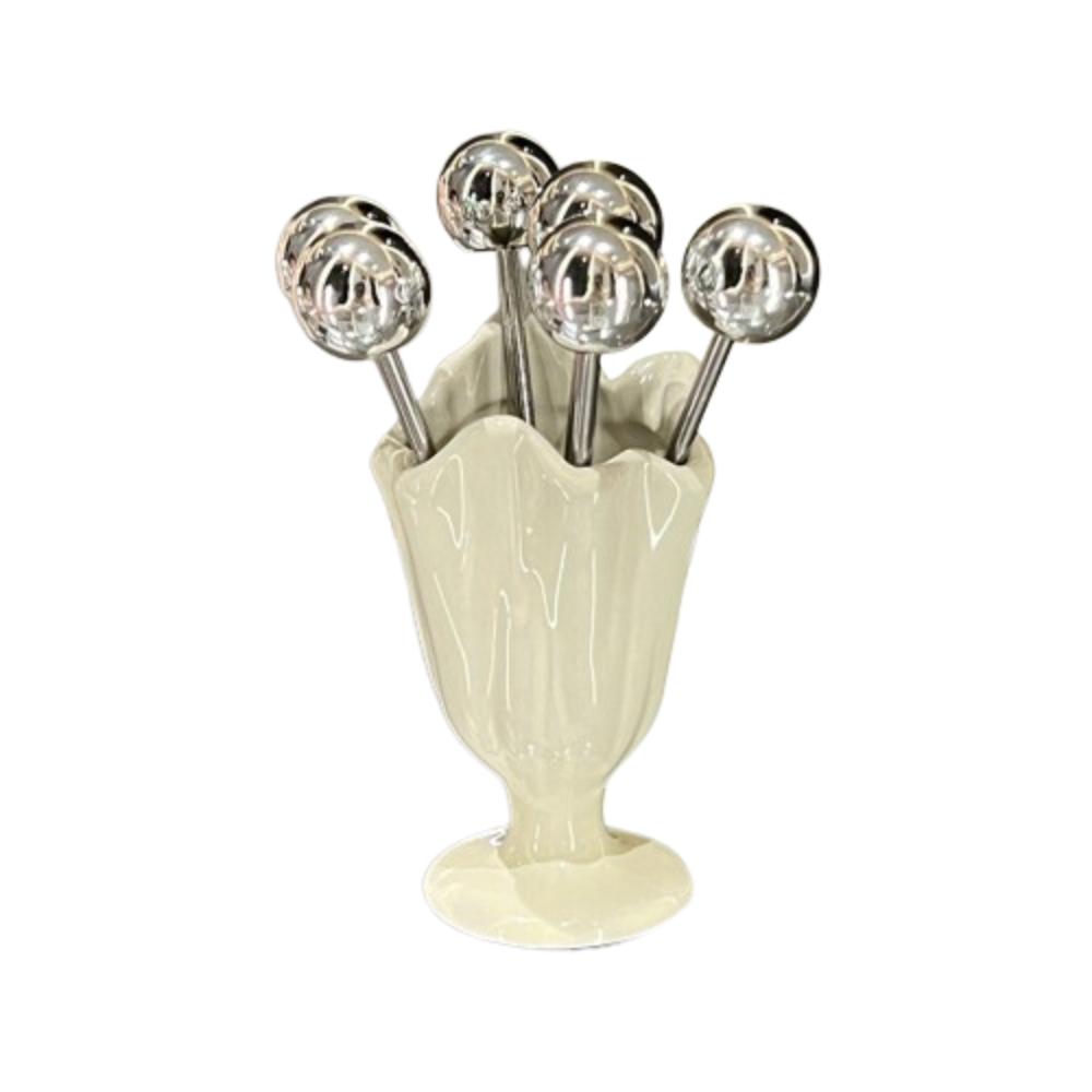 Набор из 6 вилок для фруктов из нержавеющей стали, набор баночек для хранения фруктовых шпажек, гостиная белый