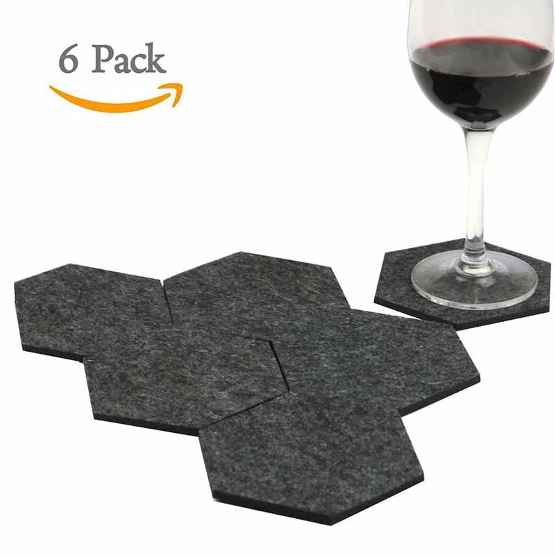 Набор из 6 штук Шестигранные подставки из фетра для чашек и напитков Пивные Кофейные Подставки Подарок темно серый